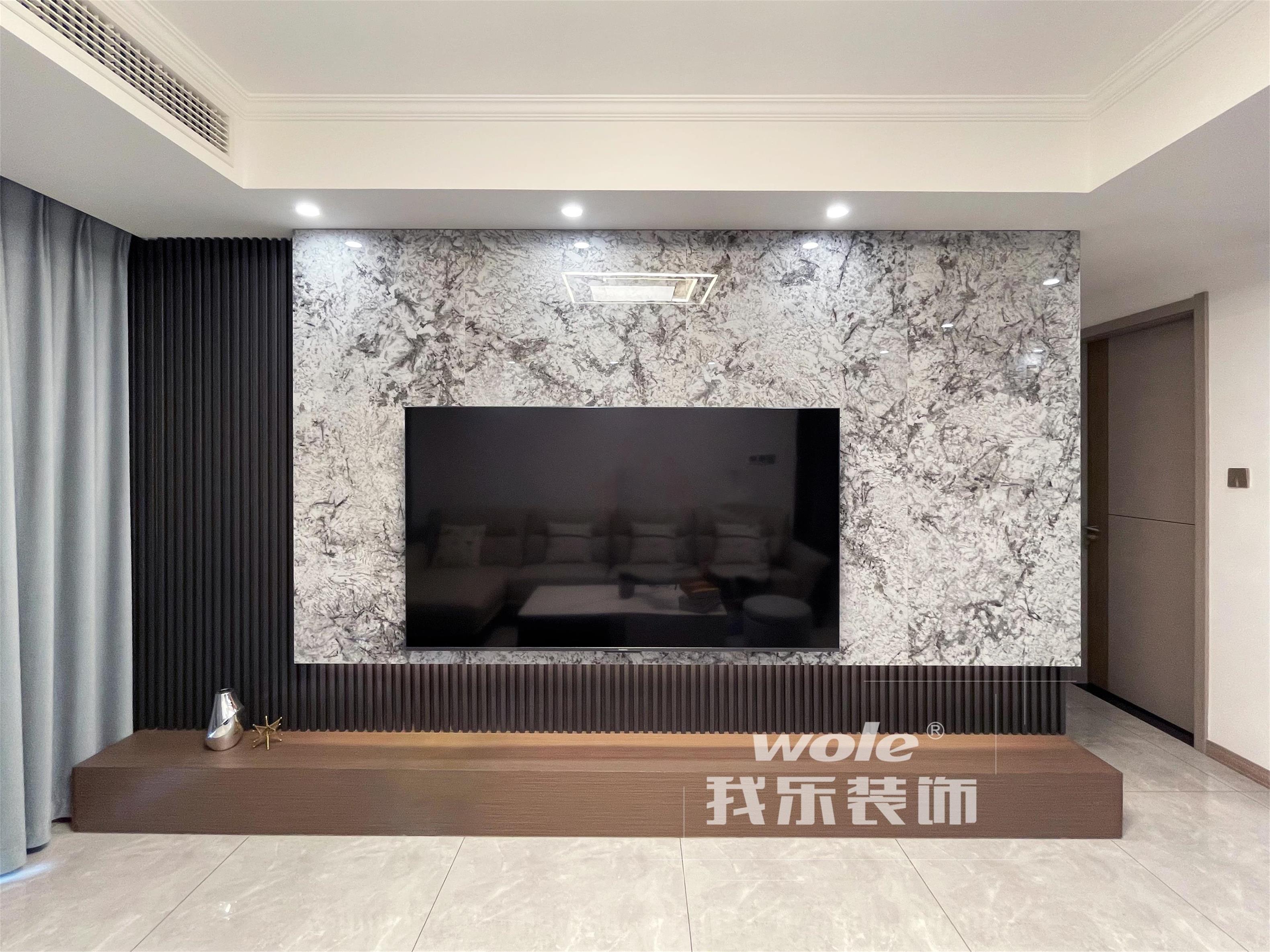 電視背景墻使用大理石背景墻,底部以木飾面做搭配。