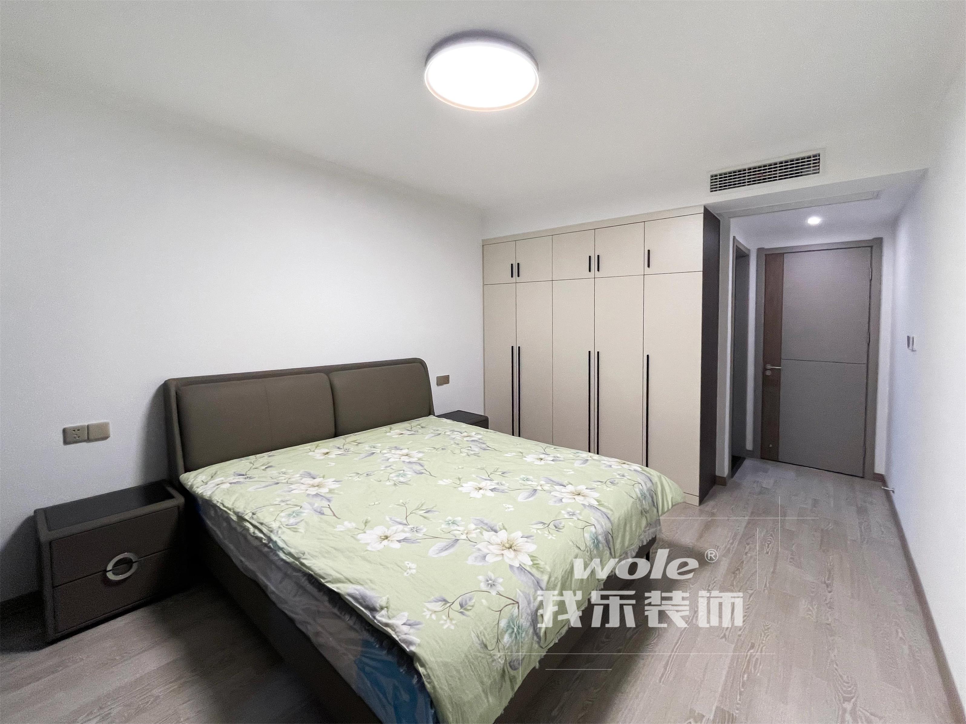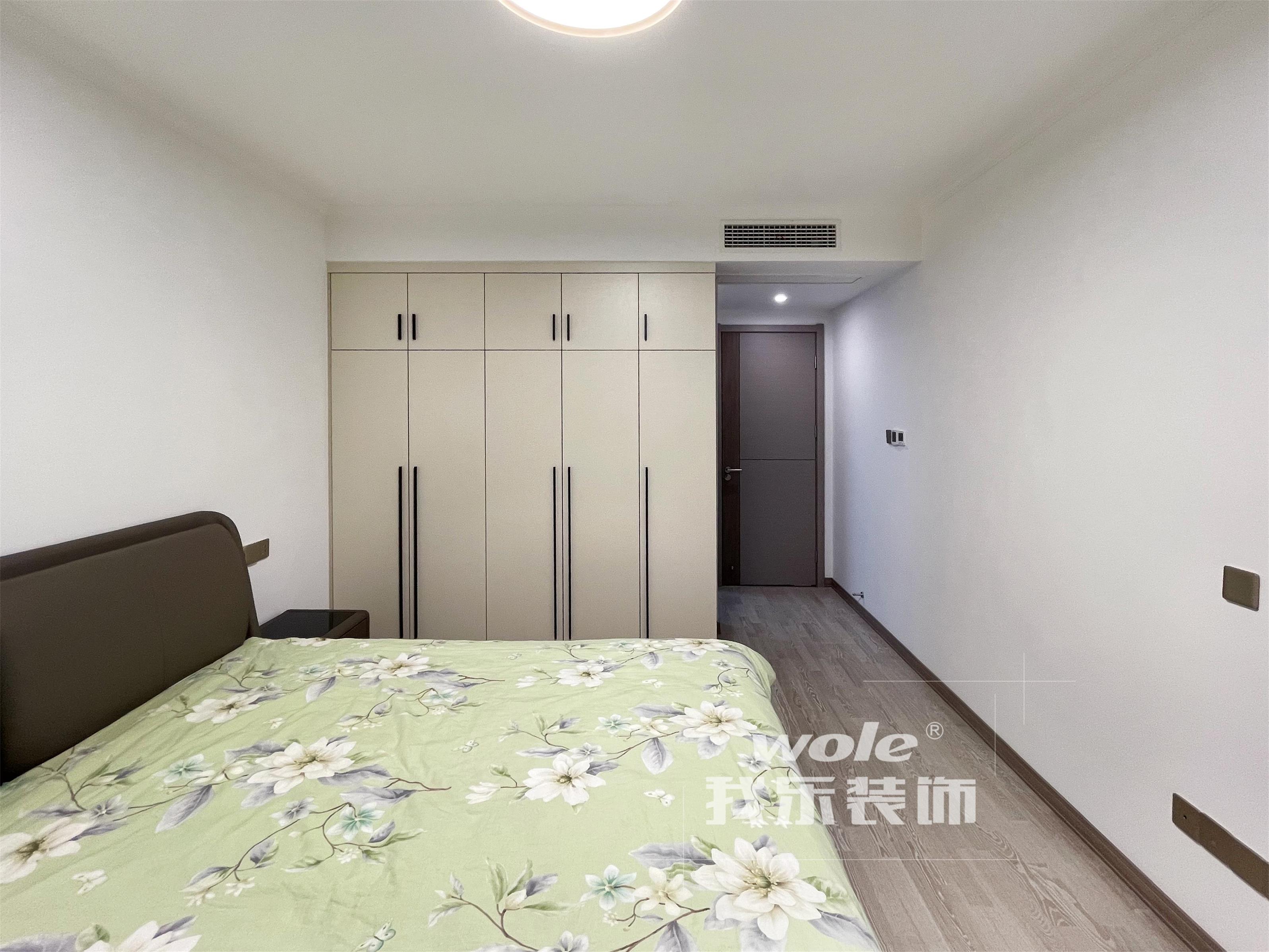 臥室相比較客廳,更多采用白色與白咖色類偏溫柔的色。