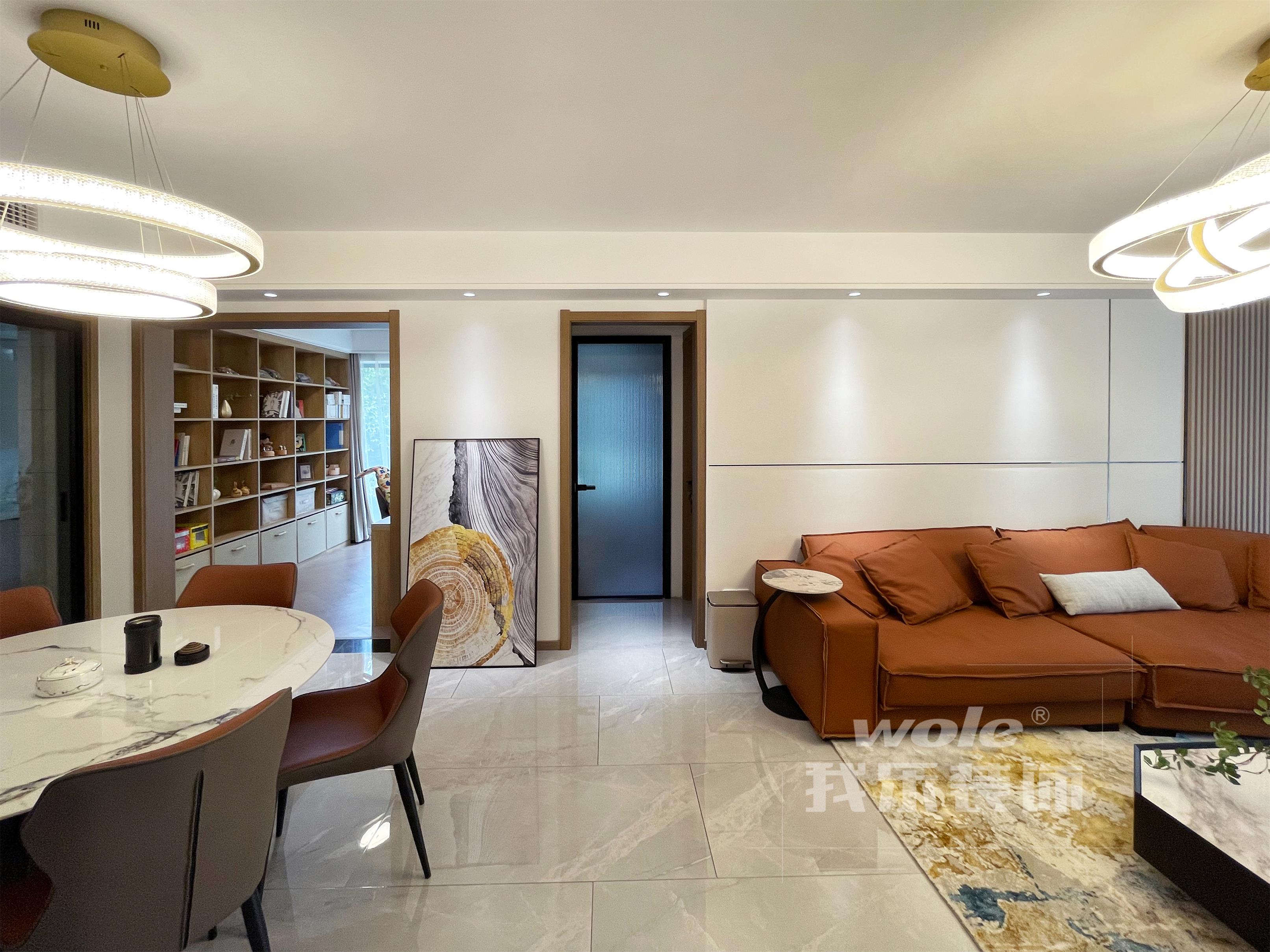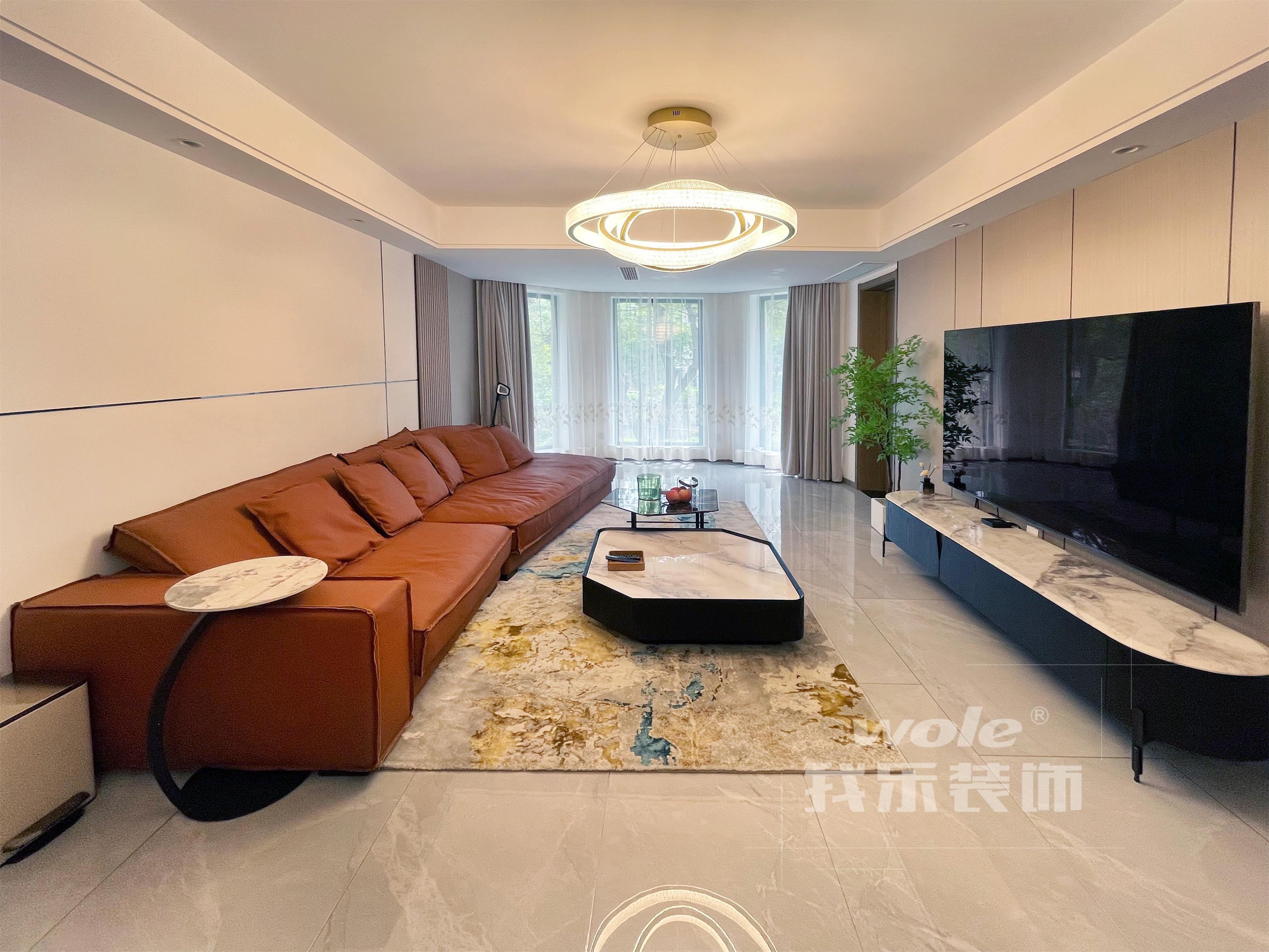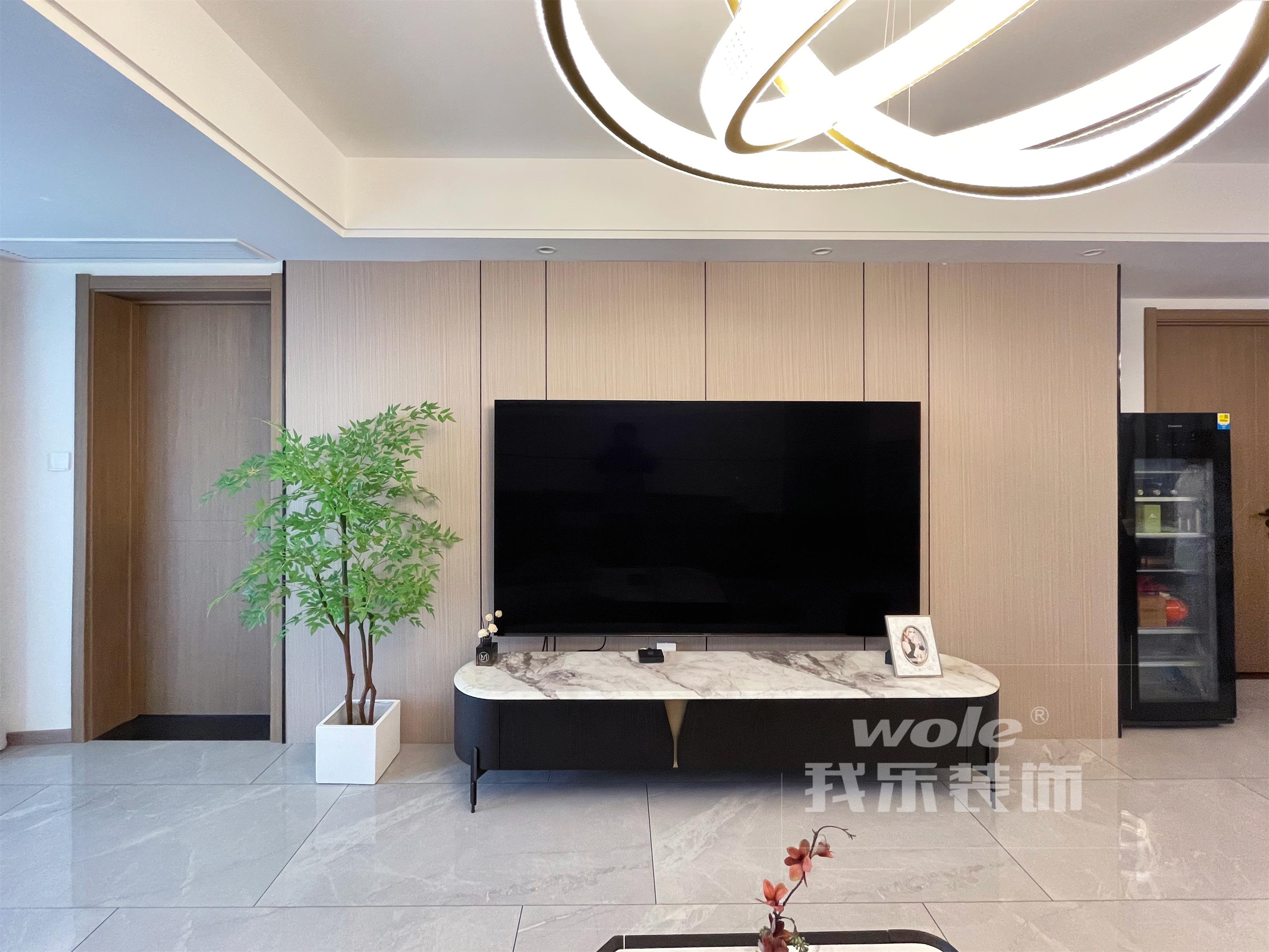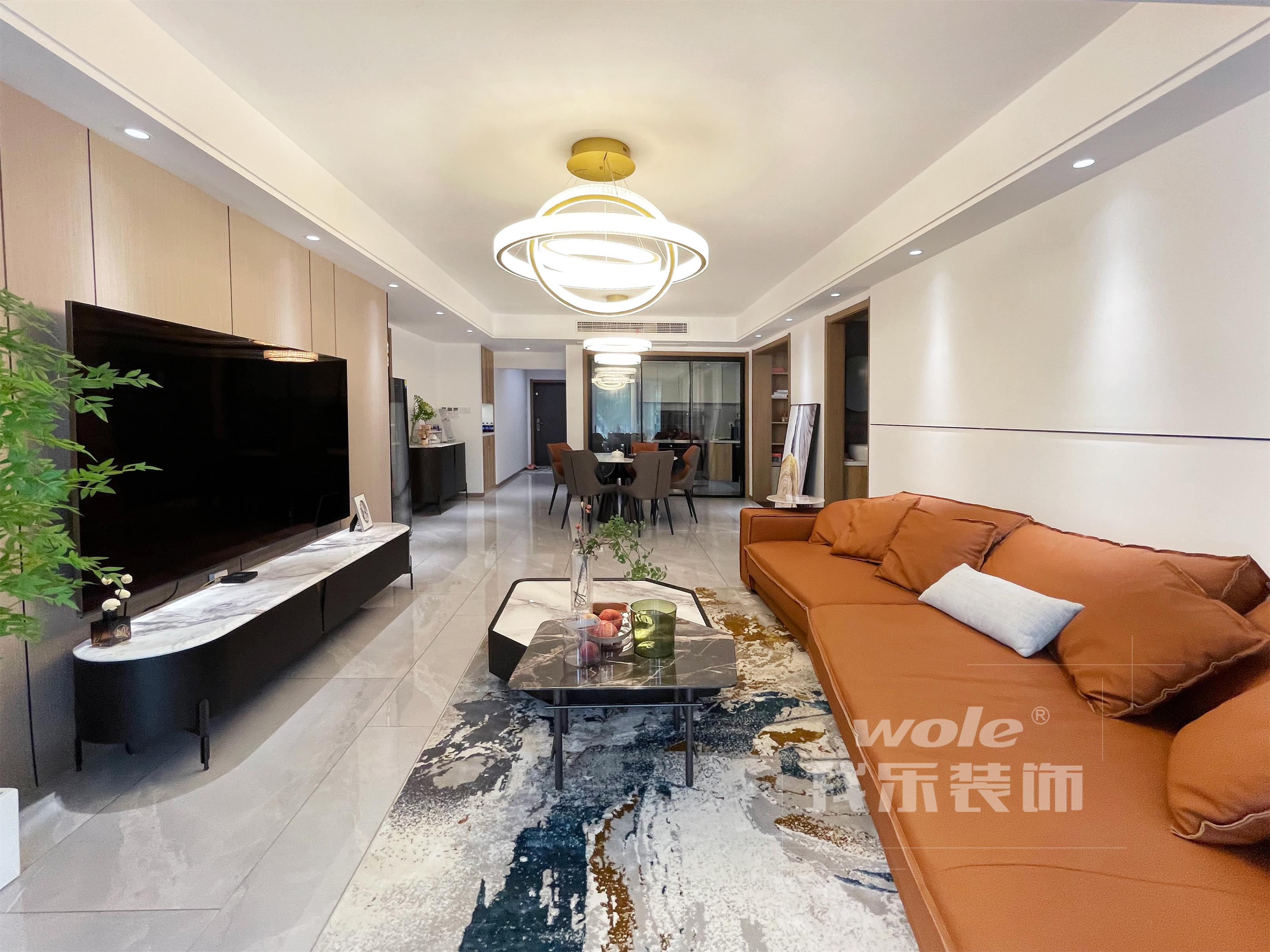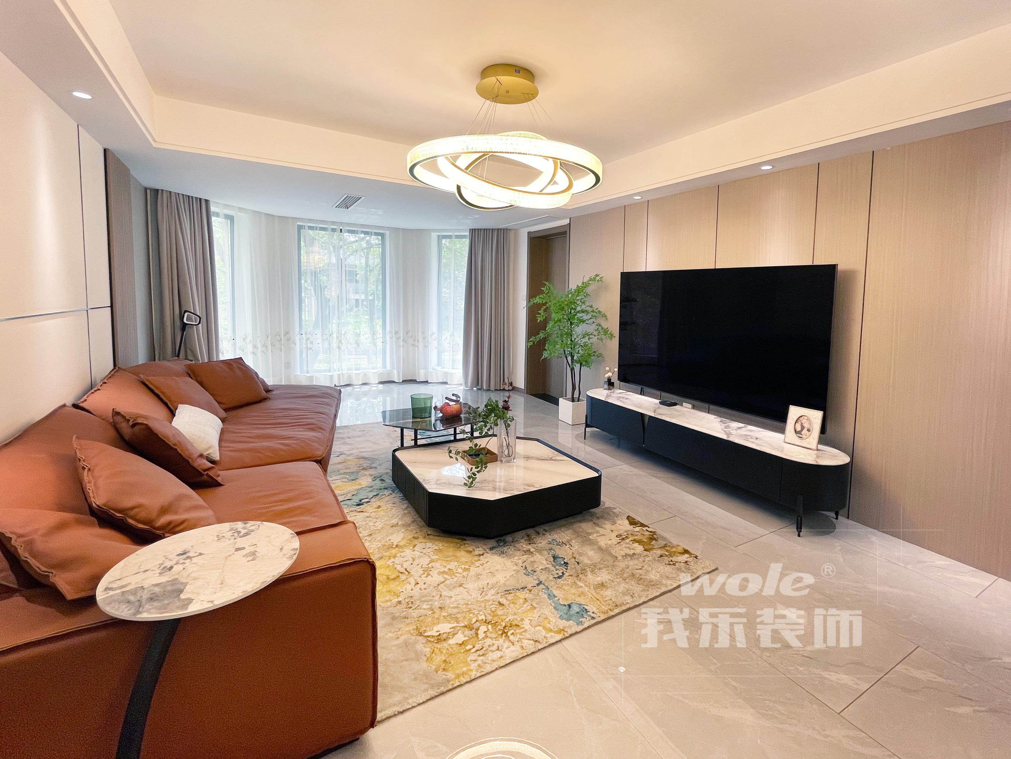皮質(zhì)沙發(fā)、木質(zhì)電視背景墻,訴說(shuō)著飽滿(mǎn)橙色調(diào)的熱情。