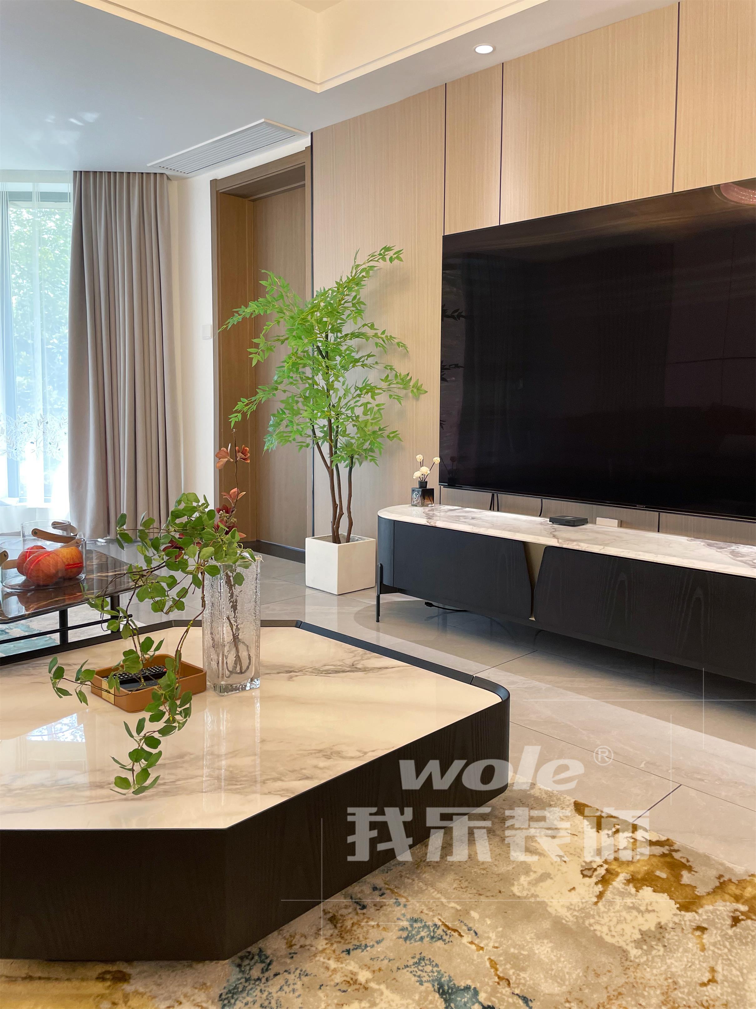 大理石臺(tái)面的茶幾、電視柜和亂而有序的地毯與線(xiàn)條感的背景墻,讓空間盡顯時(shí)尚奢華的同時(shí)又不缺時(shí)尚與大氣。