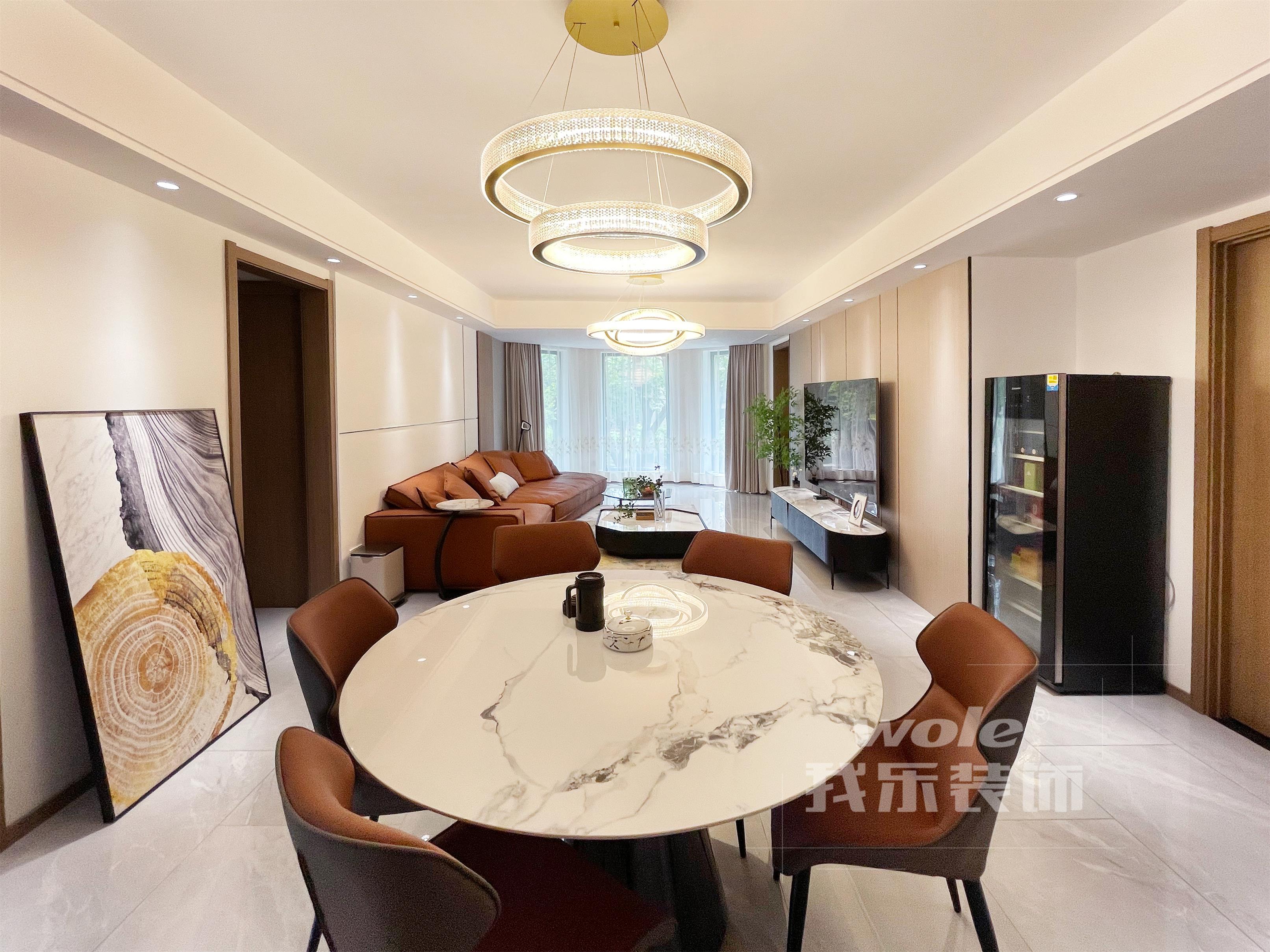 暖黃色大吊燈將氣氛渲染的更加溫馨浪漫,在繁忙的工作后,與家人相伴,用美食相聚,更加美哉。