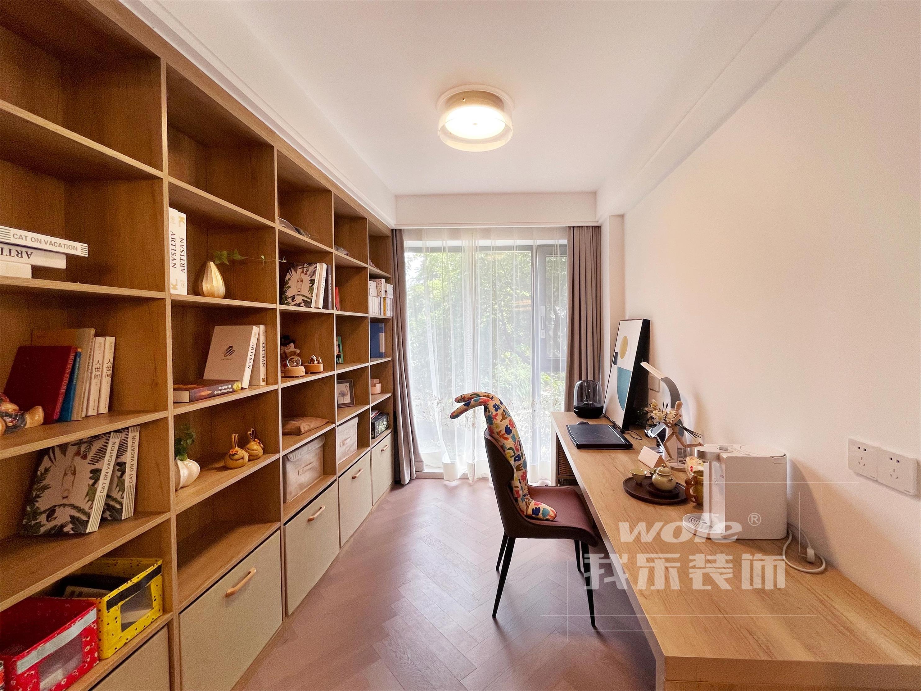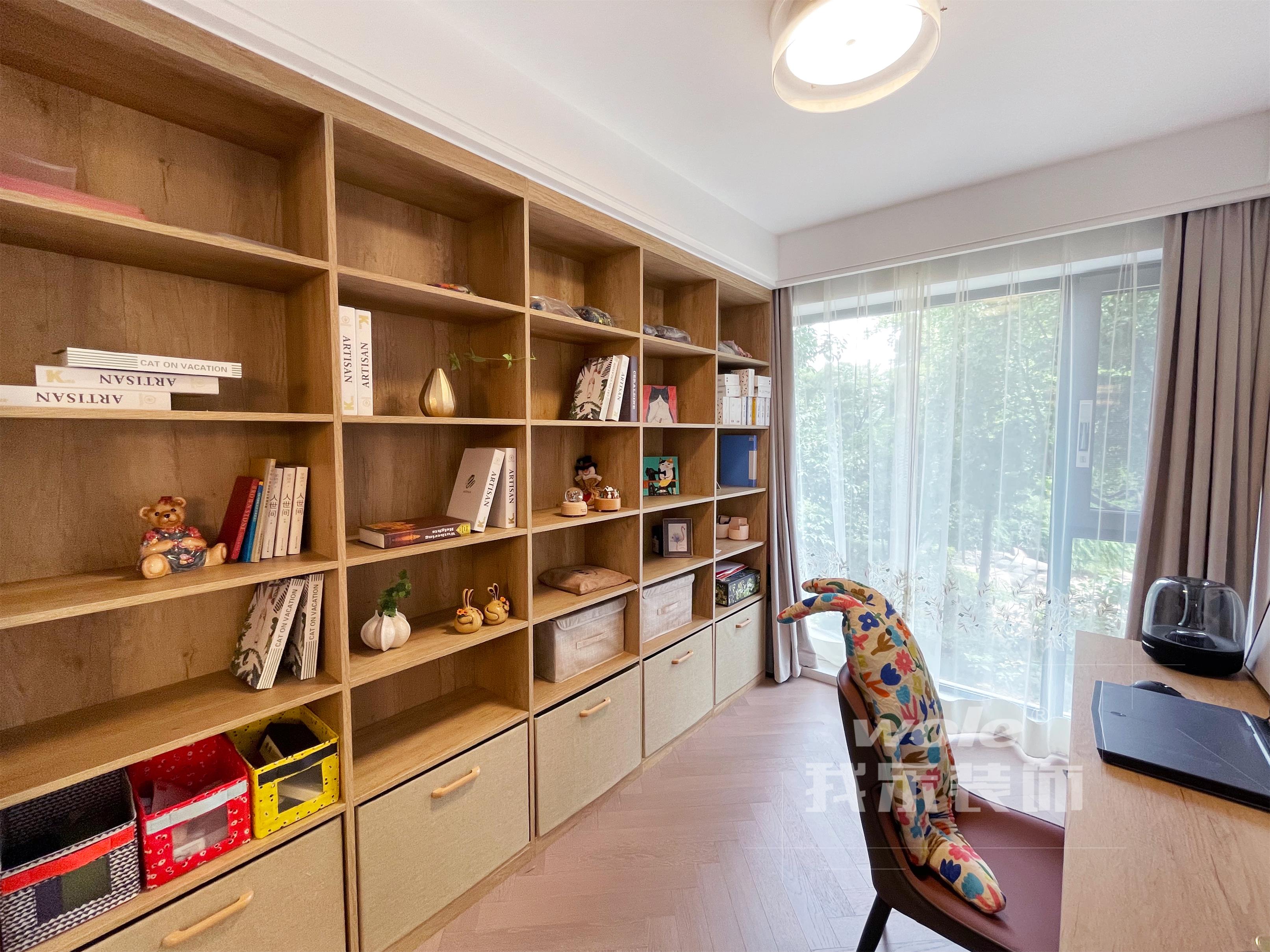 書(shū)房原本屬于贈(zèng)送陽(yáng)臺(tái),把門(mén)打通更加寬闊,女主人愛(ài)好手工,所以書(shū)房的一側(cè)打了整面柜體放一些手工物件,地板人字鋪,木工安裝工藝要求高,地板排列錯(cuò)落有致,大氣又獨(dú)具個(gè)性。