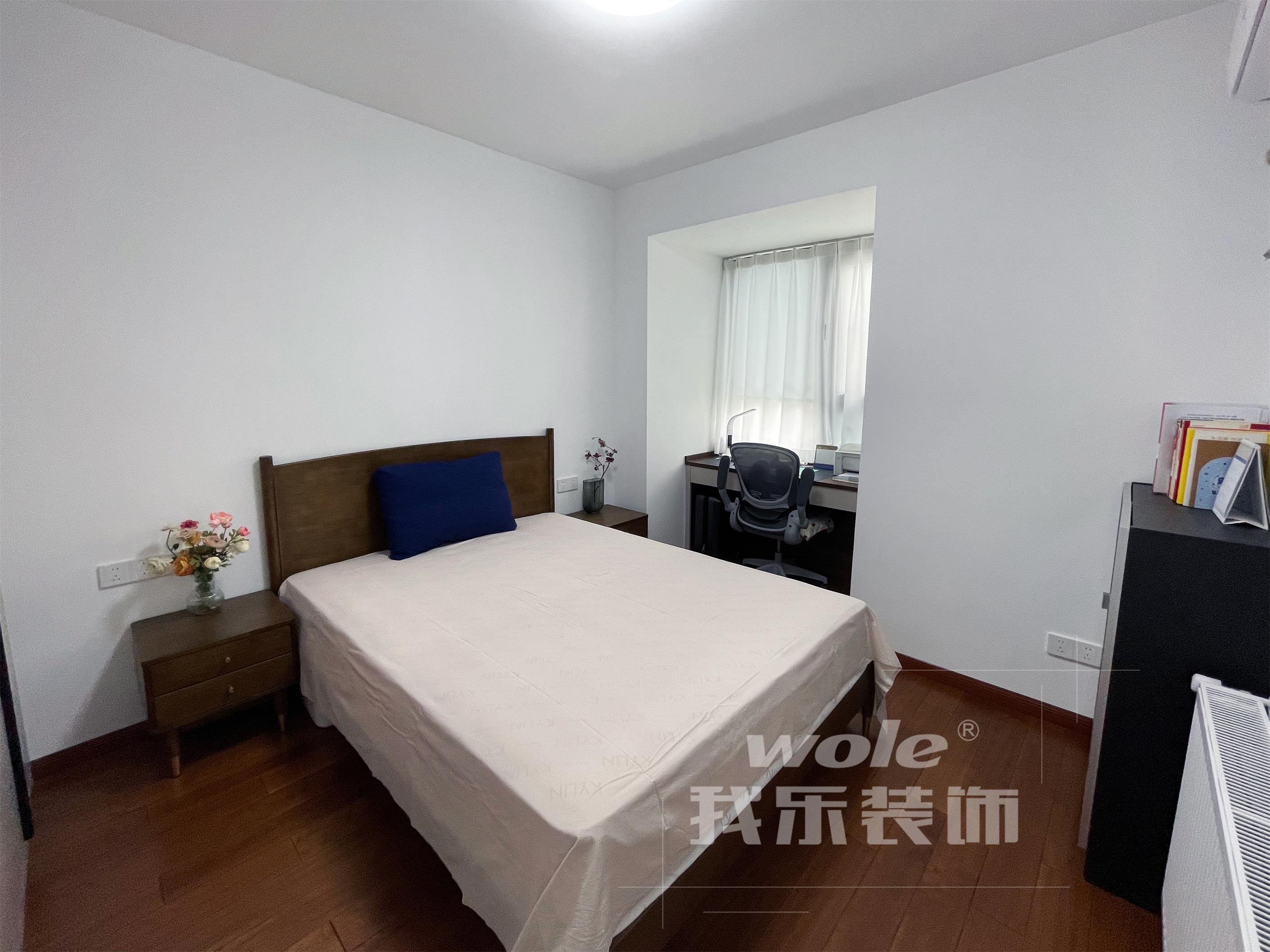 平常喜歡閱讀書寫的業(yè)主,窗戶打通后,放置了書桌椅,用來工作、讀書。臥室簡約大氣,灰白色調(diào)、簡單舒適的布置,倍感愜意。陽光透過白紗照進(jìn)來,安靜美好、自然明亮。