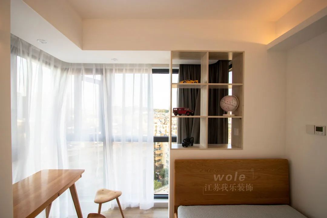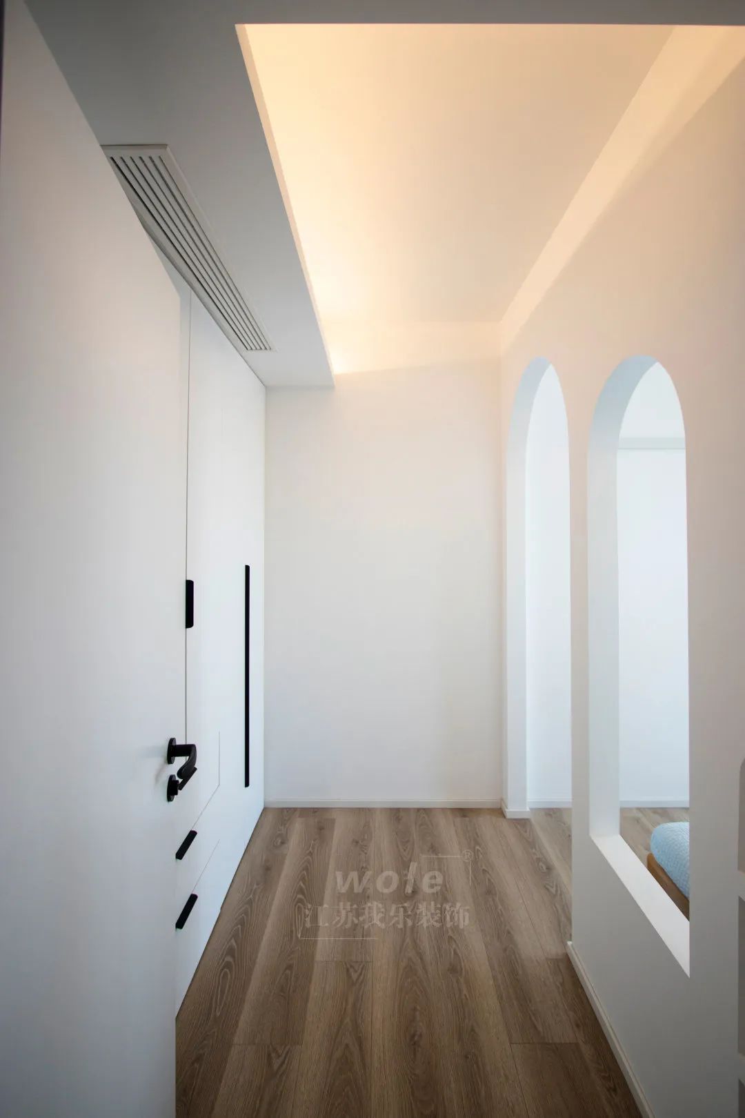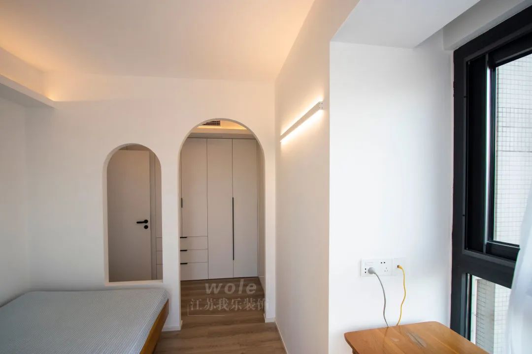 兩個(gè)圓形的拱門(mén),將臥室與收納自然分離,原木風(fēng)就這樣自然質(zhì)樸,給人治愈以溫暖的感覺(jué)。