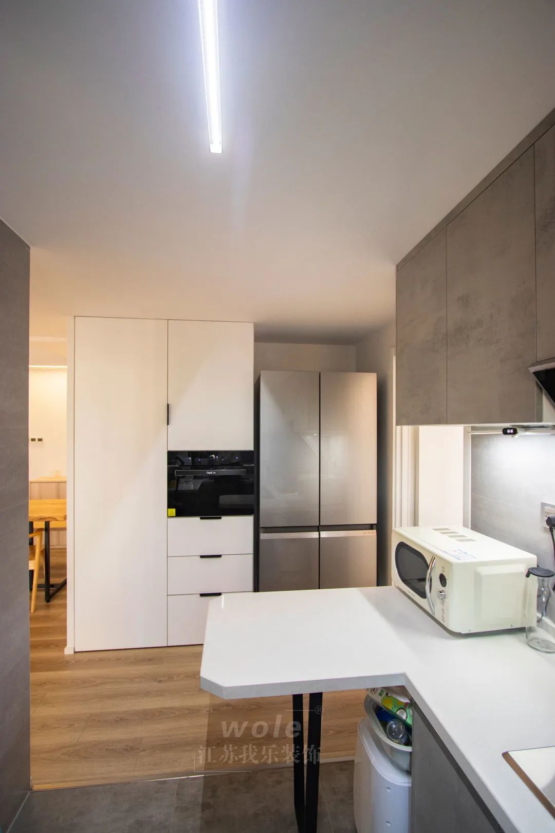 開(kāi)放式的廚房也可以成為早餐吧,將中西餐分開(kāi),動(dòng)靜分離,符合主人作為醫(yī)護(hù)人員對(duì)清潔、收納、顏值的特殊要求。