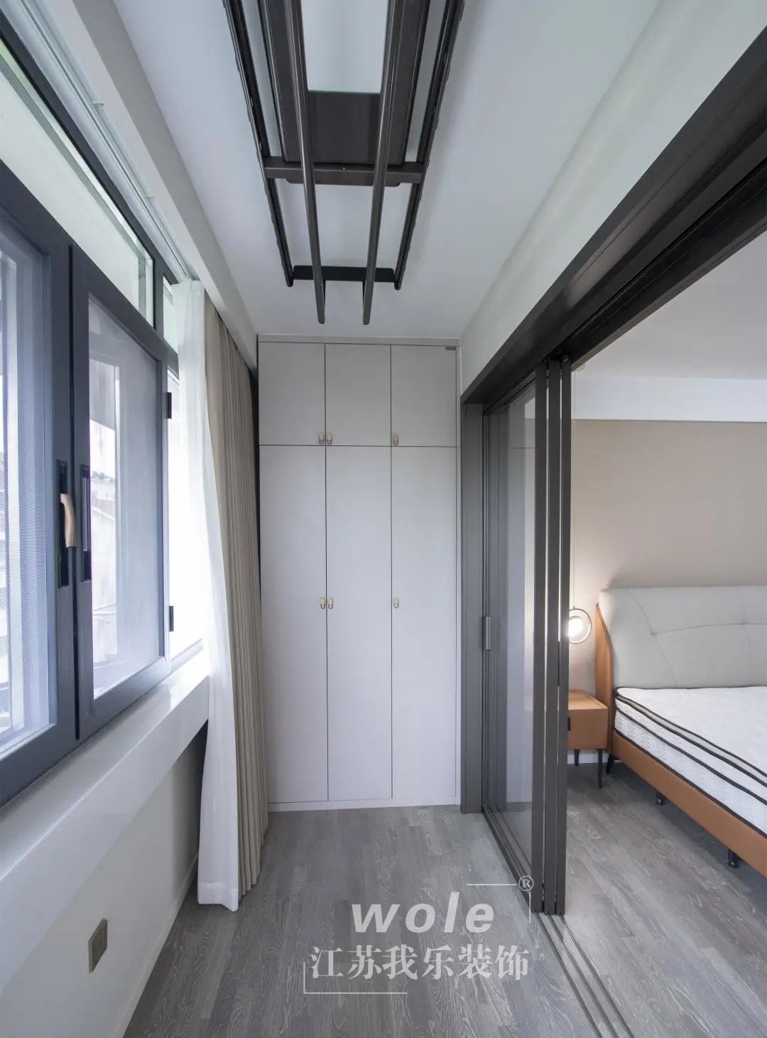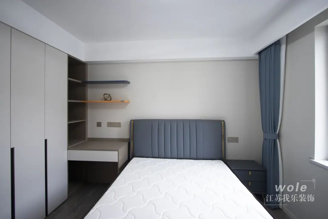 主臥連接陽臺,通透明亮采光好。用玻璃門做隔斷,既有朦朧感的分區(qū),也絲毫不影響私密性。