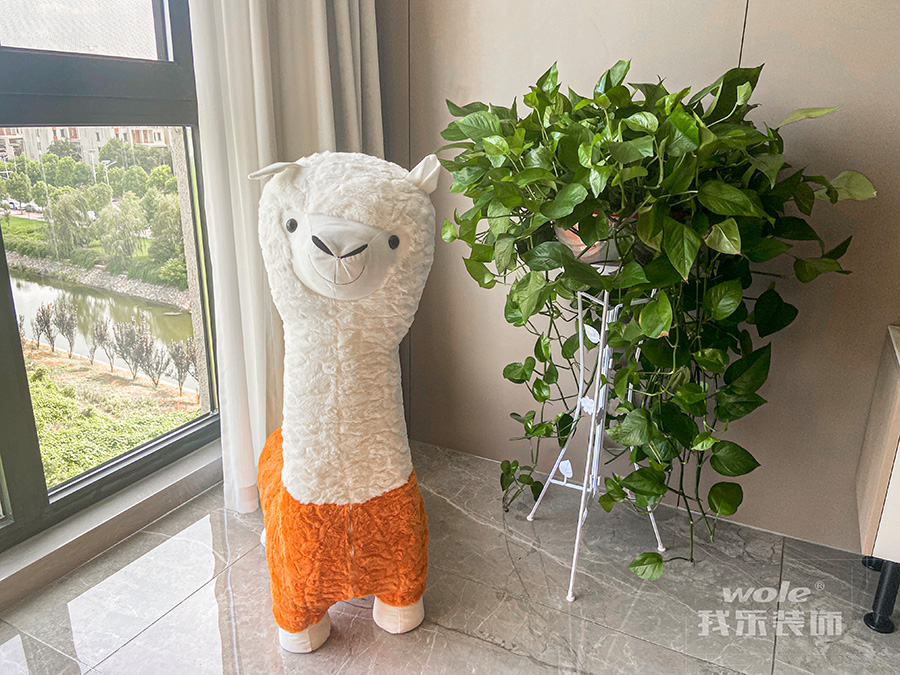 一盆綠植,一個毛茸茸的玩偶,給客廳增添幾分活力。