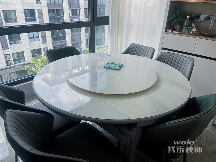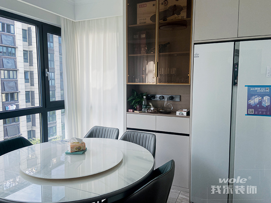 餐邊柜+冰箱一體式的設(shè)計不僅實用,顏值高,更是提高空間利用率的利器。搭配大理石材質(zhì)的餐桌和高級質(zhì)感的皮質(zhì)座椅,打造出清新優(yōu)雅的用餐空間。