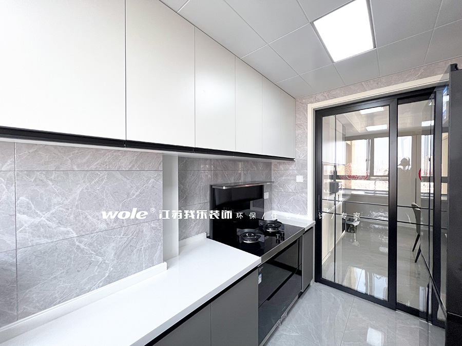 2、廚房和北陽臺(tái)打通,將水池移位至陽臺(tái),既增加廚房使用面積,室內(nèi)又沒有衛(wèi)生死角。