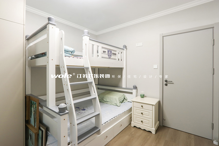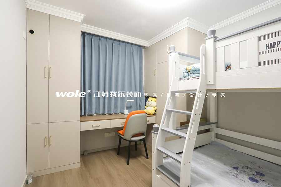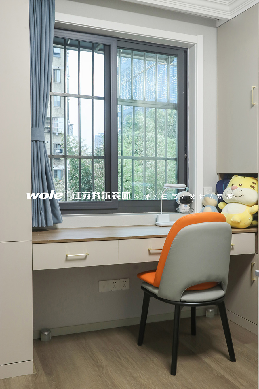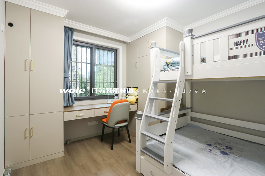 ▲兒童房窗戶居中,兩邊做通頂儲物柜,中間窗戶位置剛好做簡單帶抽屜的書桌,合理利用空間,同時也是全房光線最好的地方,一舉兩得。