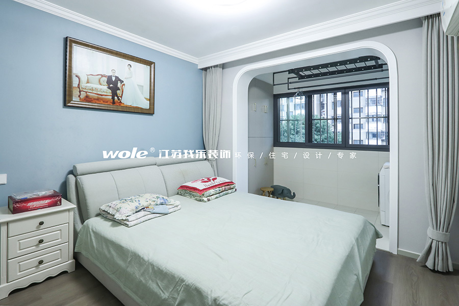 ▲主臥和陽臺之間做拱形門洞,不裝門,顏值更高。透過門洞,能夠?qū)崿F(xiàn)放大空間的視覺感。