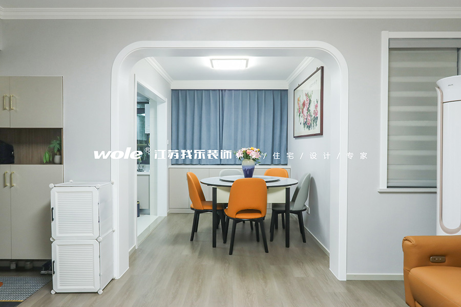 ▲ 客餐廳之間做拱形門洞,視覺上可以拉升層高。拉開窗簾,公共區(qū)域更加開闊明亮,采光更充足,顏值也更高。
